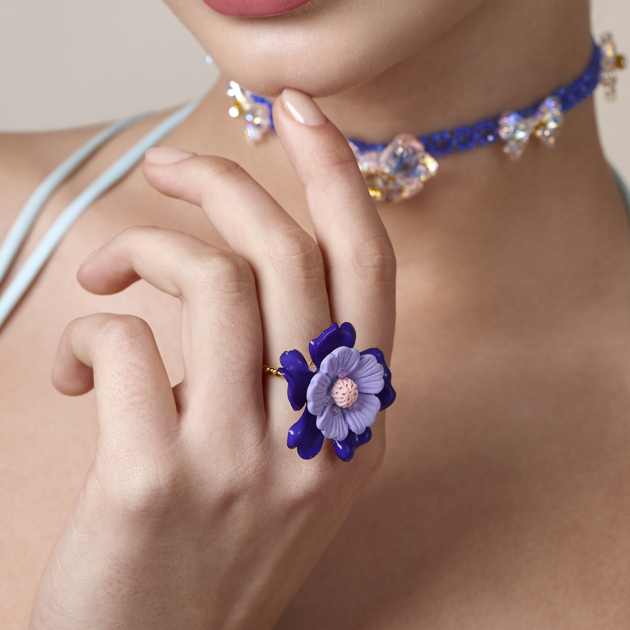 Anillo flor de cerezo azul ultramar