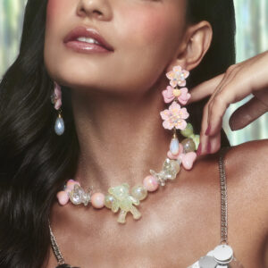 Aretes donuts realizados con accesorios de resina y complementos enchapados en oro.